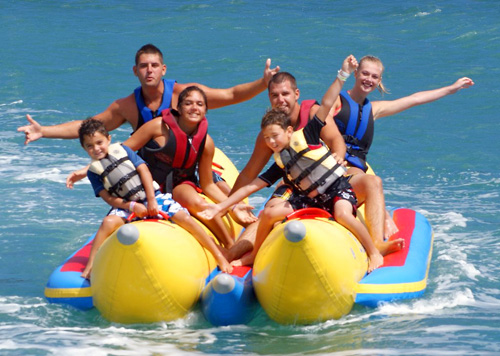 Banana Rides are splendidly fun and exciting. Just sit and enjoy as you are being wisked away through the waves and hold on tight and try not to fall off.